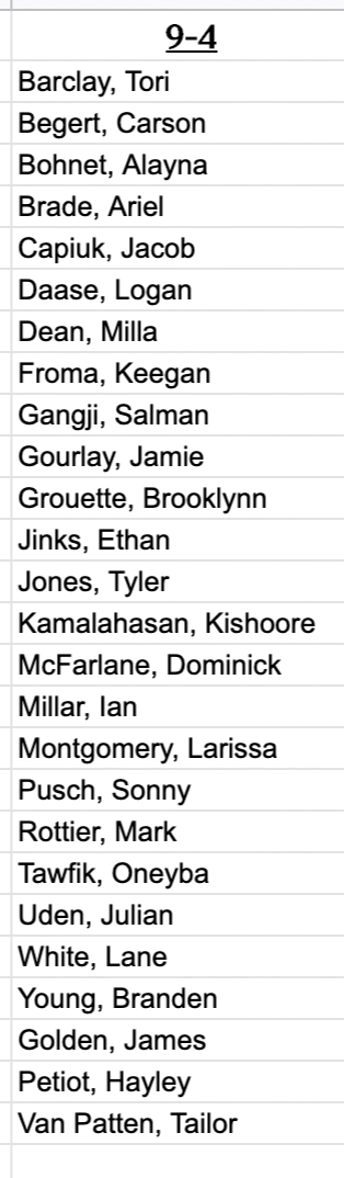 BCHS School Announcements